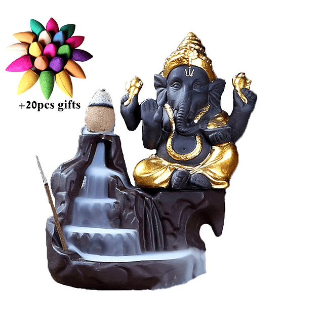 QUEMADOR INCIENSO GANESHA ELIMINA MALAS ENERGÍAS DECO HOGAR 20 CONOS REGALO